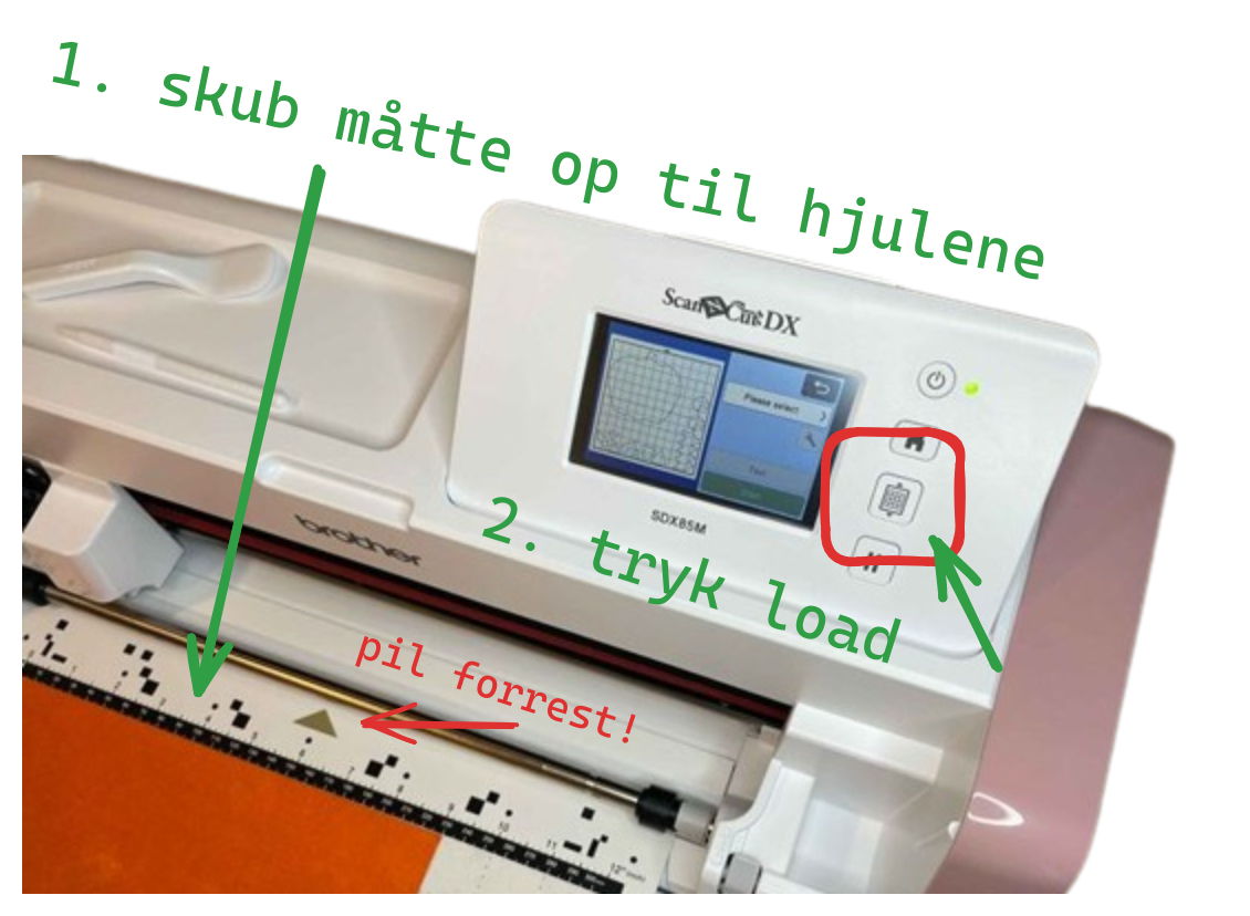 Stoftrykfolie skal have den gennemsigtige side nedad.