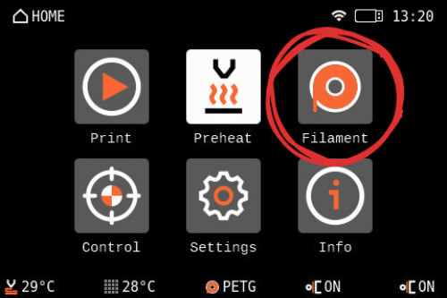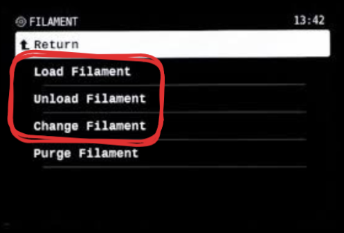 "Filament" > "Load/Unload"